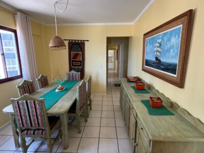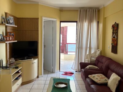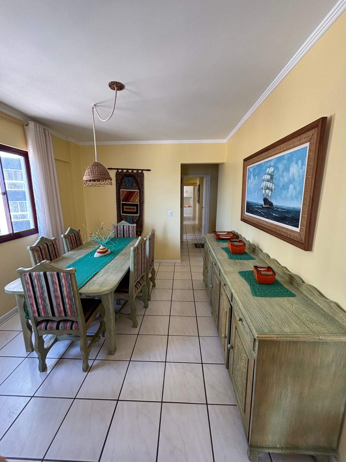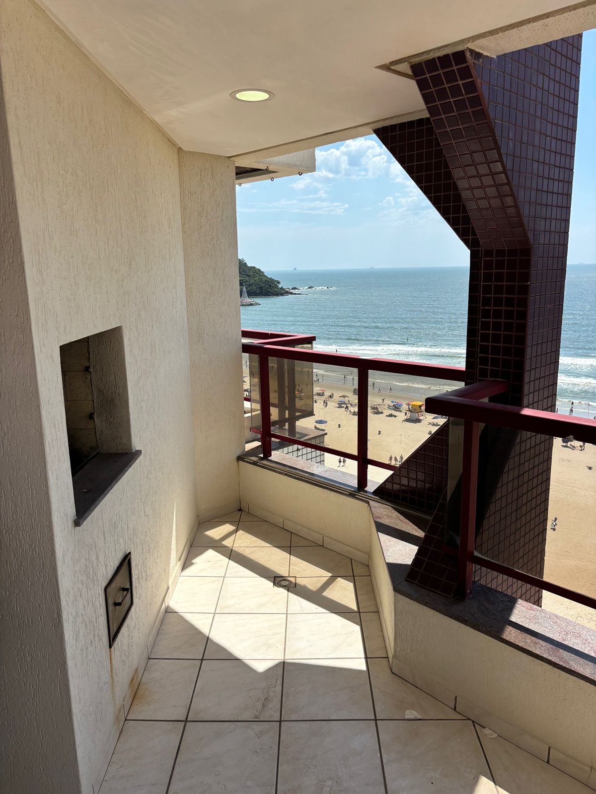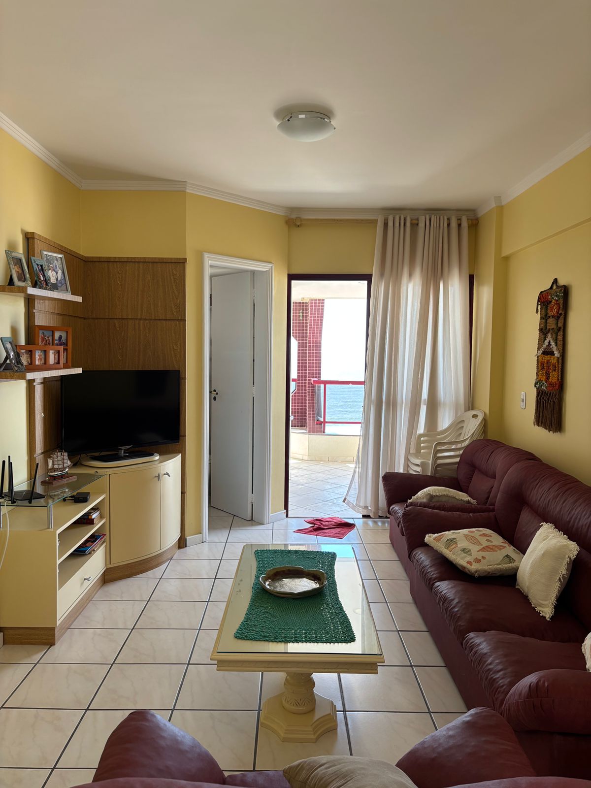 A área social é integrada e iluminada, com living espaçoso, cozinha equipada e sacada aberta com churrasqueira a carvão, perfeita para receber amigos e aproveitar a vista da praia.
